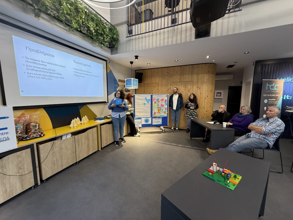 Αφού εξοικειώθηκαν με τις βασικές αρχές της μεθοδολογίας και κατανόησαν τη σημασία της ανθρωποκεντρικής προσέγγισης, οι συμμετέχοντες εργάστηκαν ομαδικά, εφαρμόζοντας τα εργαλεία του Design Thinking, με στόχο την ανάπτυξη καινοτόμων και λειτουργικών προτάσεων για τον επανασχεδιασμό και την ενεργοποίηση του πάρκου. Μέσα από τη διαδικασία της παρατήρησης, της ενσυναίσθησης, της ιδεοποίησης και της σύνθεσης, ανέπτυξαν λύσεις που ανταποκρίνονται στις ανάγκες διαφορετικών ομάδων χρηστών και ενισχύουν τη χρήση του χώρου καθ’ όλη τη διάρκεια της ημέρας.